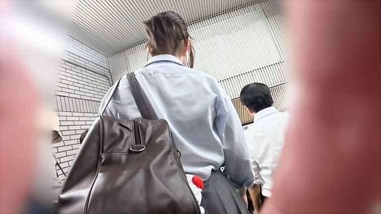 階段では後ろ姿を接写ぼかし無しで収録。