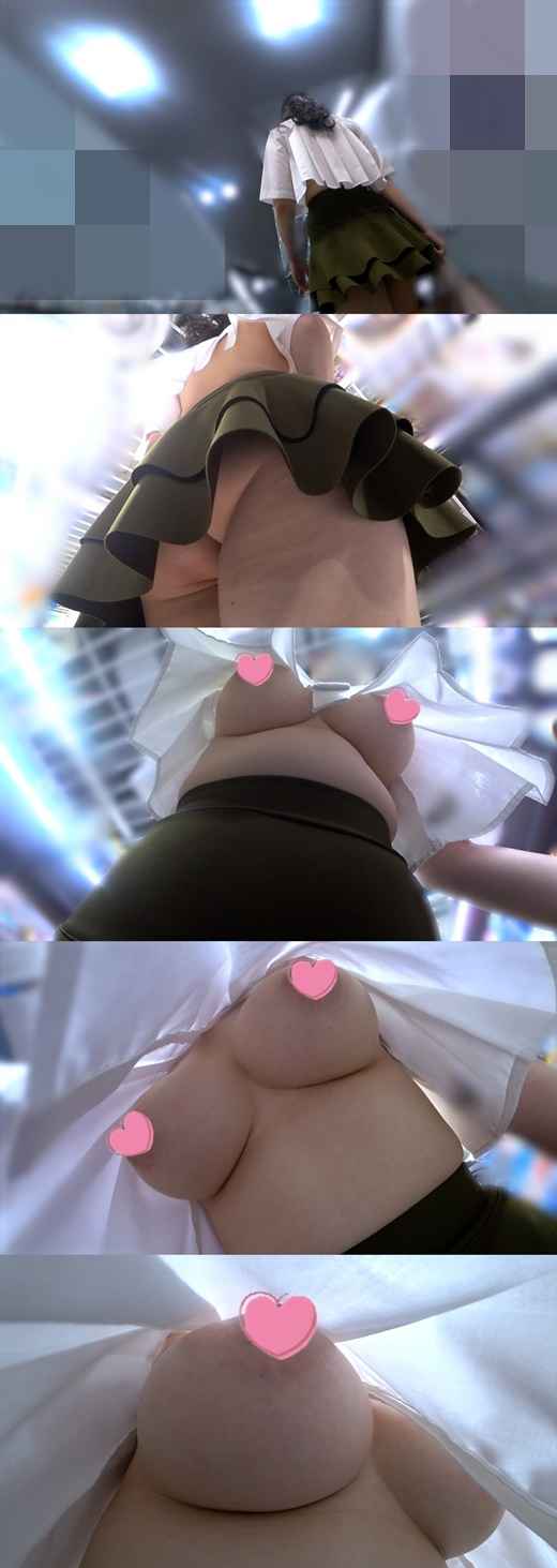 高身長お姉さんのシャツの中の秘密を探訪中です。歩行中のいたずら風によってシャツがめくりあがるハプニングが発生!そこでノーブラであることが判明しました。