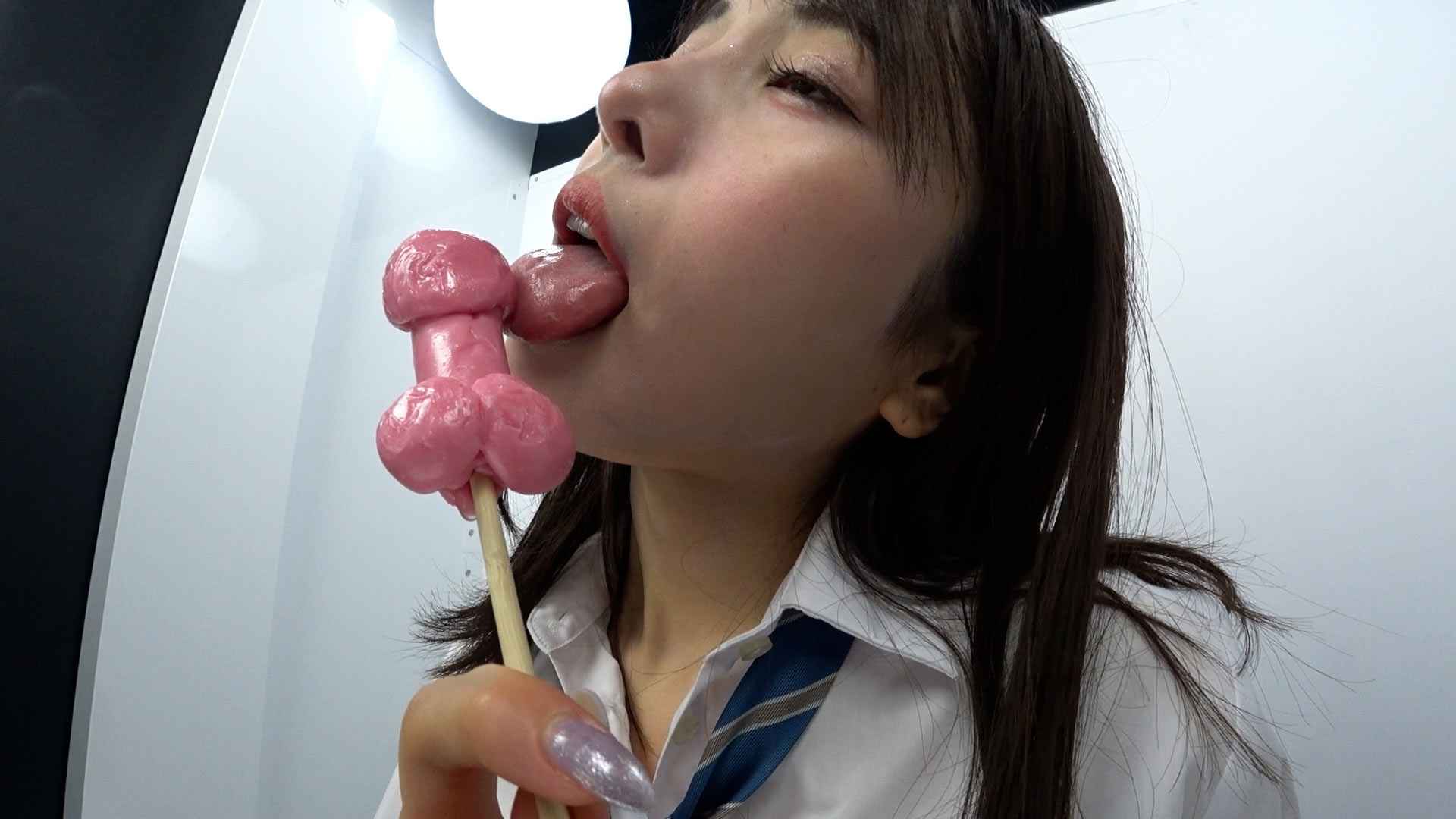 挙句の果てに、ペ〇ス型のアメ(何故この形!?)を舐る始末www