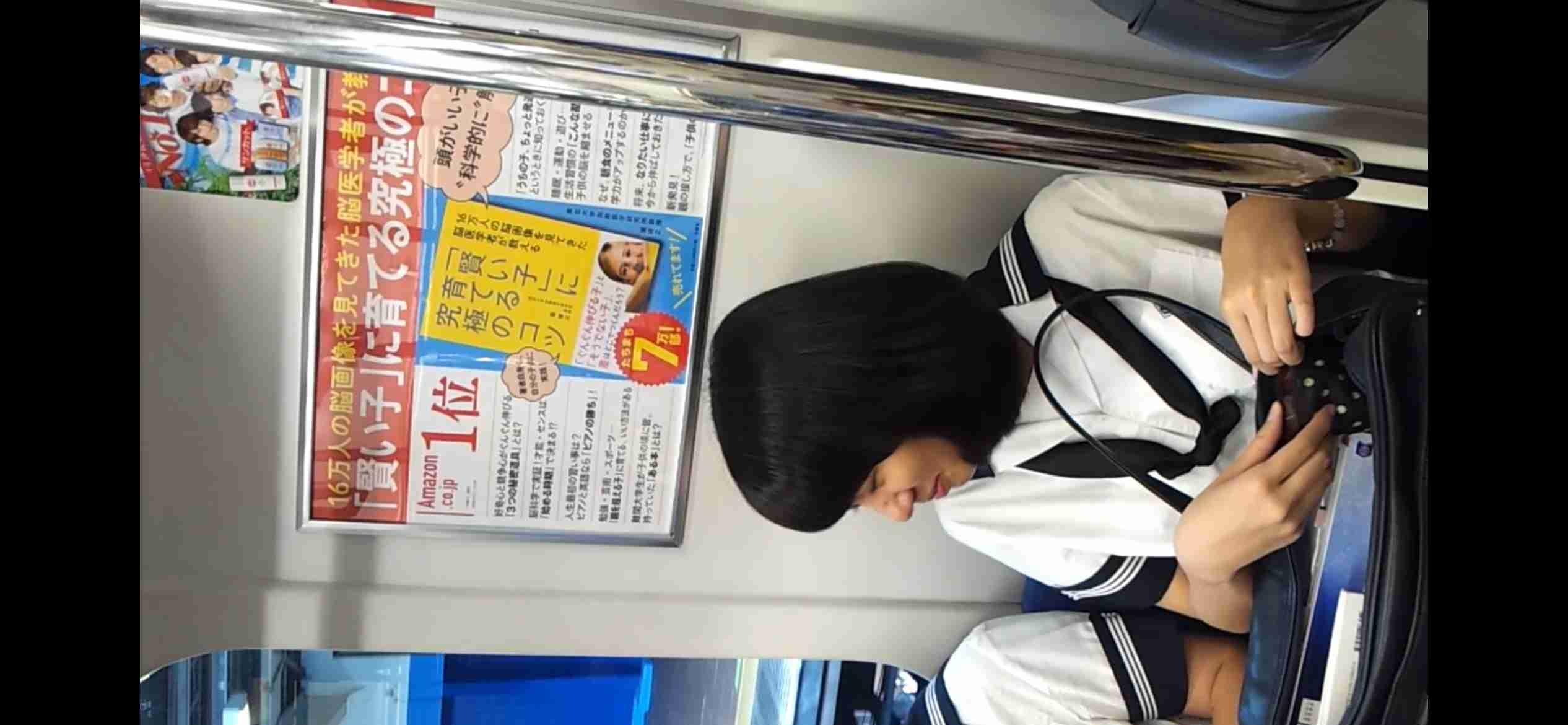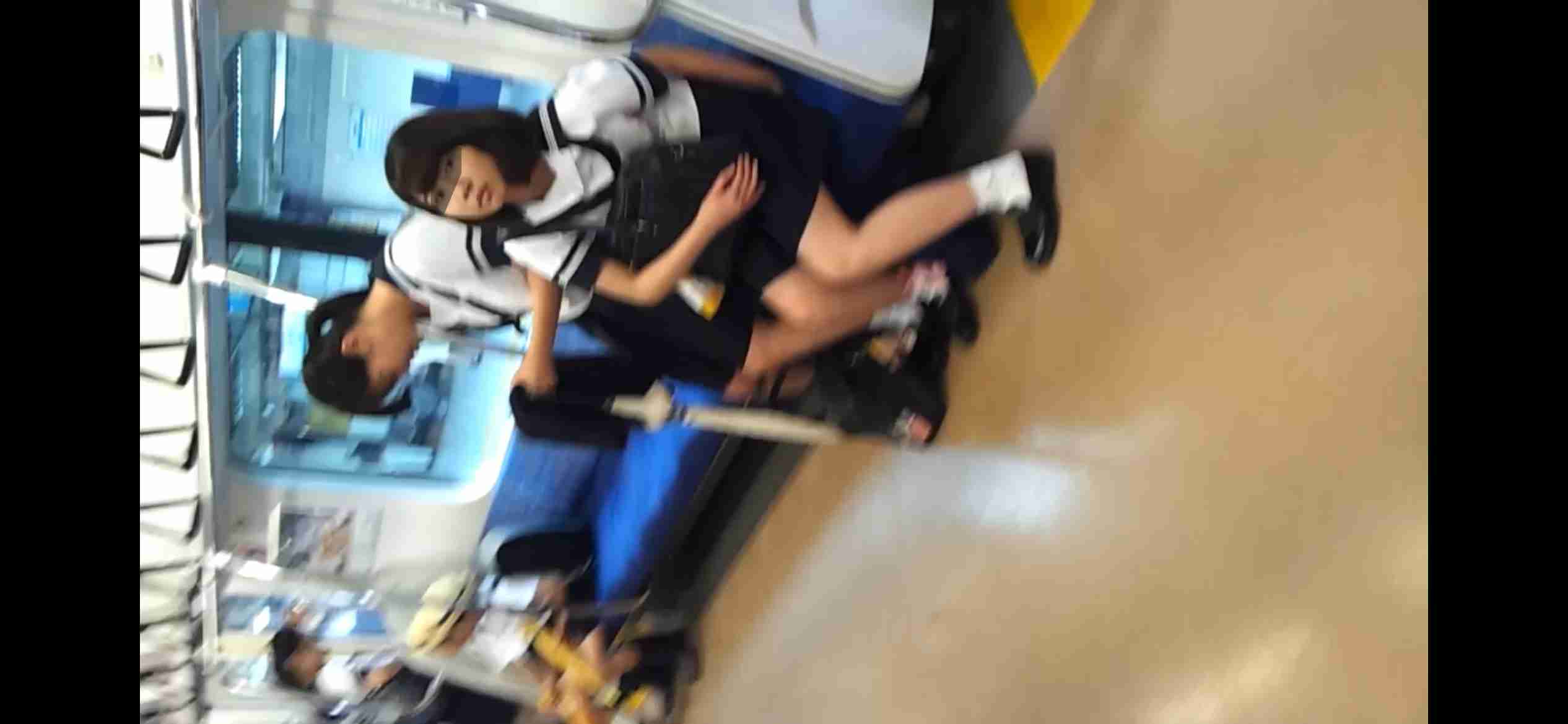 駅のホームから車内への映像でセーラー服たくさん。