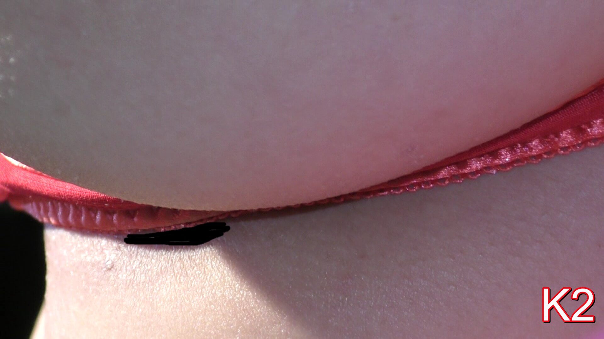 最初は何の変哲もない白パンツかと思いきや、後ろに回ると、スケスケでケツ殆ど丸出し。