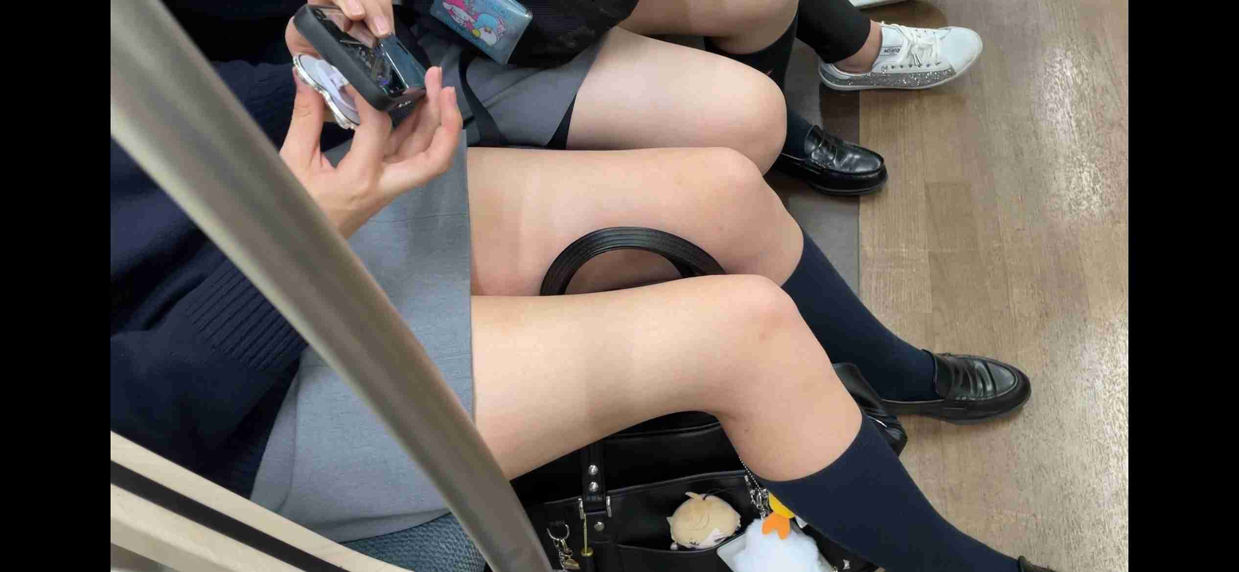 でもすぐに降りてしまい、隣の色白ツヤツヤ太ももJKが同じ席に座り、私のアングルに入ってきてくれました。