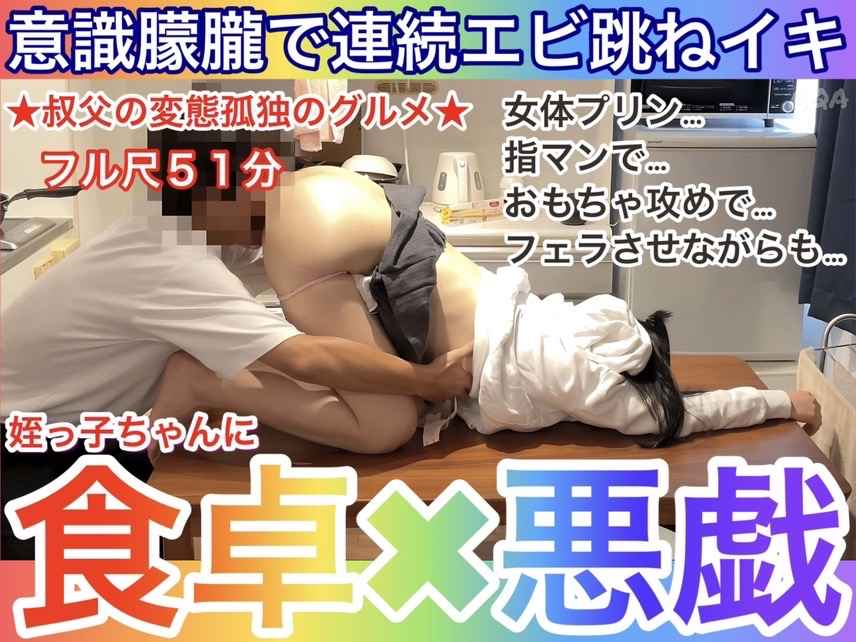 後半ではダイニングでぐったりした姪っ子ちゃんにそのまま食卓で悪戯してしまう内容ですが、前半とのギャップは勿論、姪っ子ちゃんの敏感すぎるイキっぷりをご堪能頂ける内容に仕上がっています。