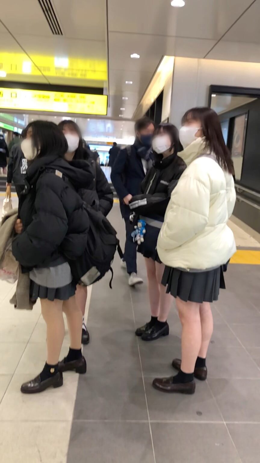 前方に待ち合わせで誰かを待っているJK集団を発見!