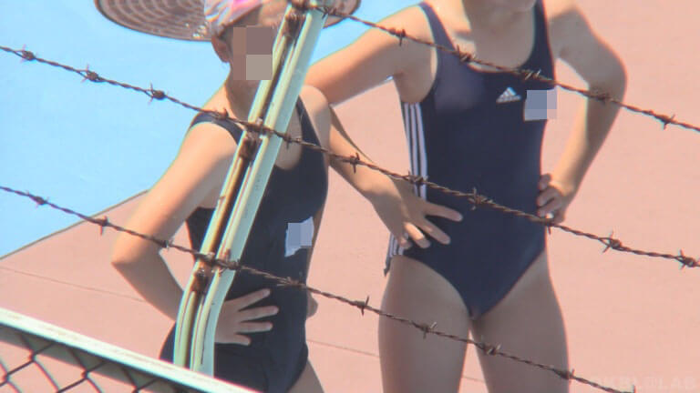 いい天気。光線状態もよく水着の繊維の様子がわかるほど。よれよれの肩紐水着娘の姿も。いつものお肉がギュッとした感じの娘を準備体操時からじっくりいただいております。そしてこのチームということは…まいどの水色ゴーグル娘も登場。両人ともラッシュガード常時なし、皆勤賞モノの全出席と非常にいいかんじ!水色ゴーグル娘はスイムキャップ非着用、水着だけ、というシーンもご用意。