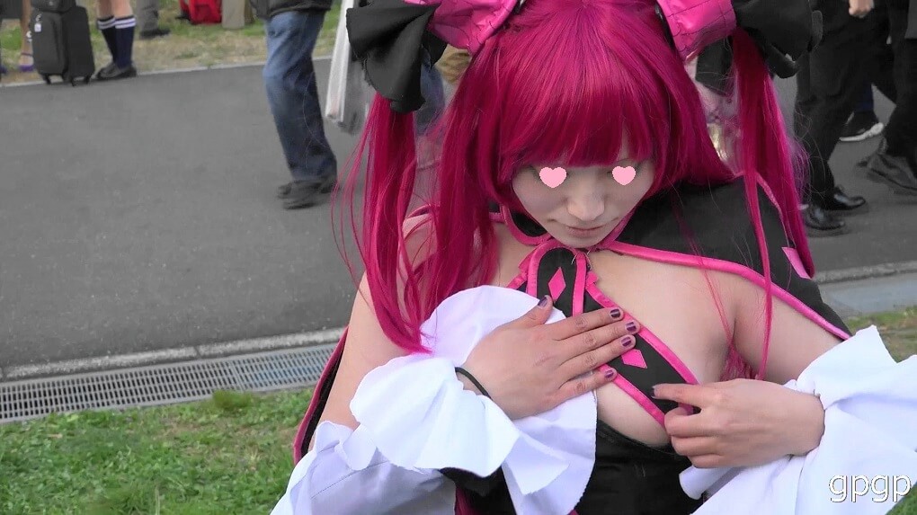 ※まだご覧いただけていない方もいらっしゃいますので内容は、サンプル画像からもお分かりいただけると思いますが、本来見えてはいけないものが見えてしまっています。きわどい衣装とはいえ、レイヤーさんは胸のあたりをかなり気にして押さえているな~