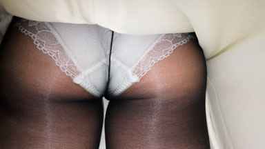 黒ストッキングに白のP。
