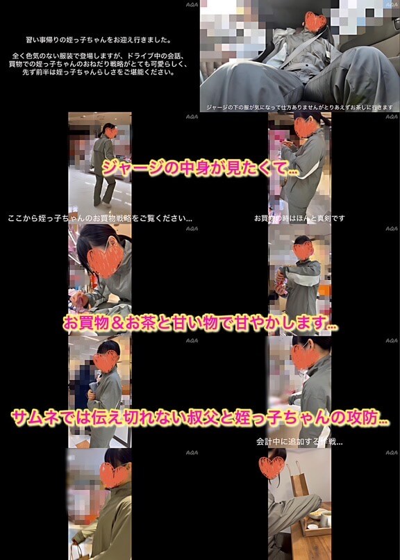 本作は習い事でバレエを始めたばかりの姪っ子ちゃんをお迎えに行き、お買い物とお茶をした後に、私叔父の自宅でセクハラ柔軟体操と電マ・オイルでの全身マッサージからの悪戯という流れの作品になります。