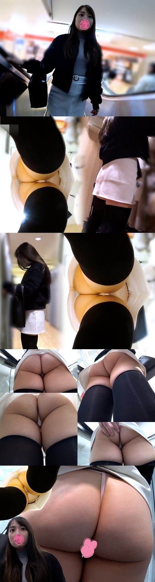 歩行中は豊満な尻肉通しがぶつかり合い、臨場感ある映像となっております。一方、彼女がお買い物に夢中になっている間にスカートを真下から探訪中です。