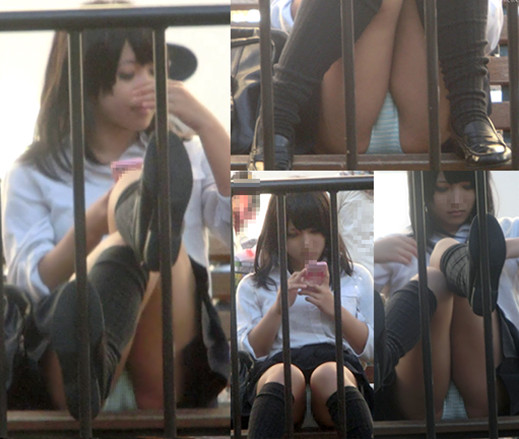 お行儀悪く足を柵にかけ、大胆にパンチラする姿を撮影しました(@q@)♡