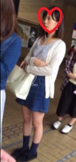 1日目はデニムのミニスカートの中に薄いピンクのPを履いております。スカートが短く、適度に広がっているため、フロントの方まではっきり見えています。かわいいお尻も併せて見ることがができ、感激です。