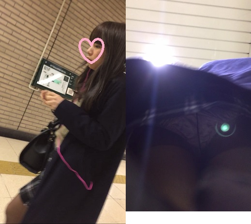 一人目は女子大生風のモデルさん。非常に可愛いです。階段を登る後ろから撮影させていただきまして、テッカテカのパンティをいただきました。