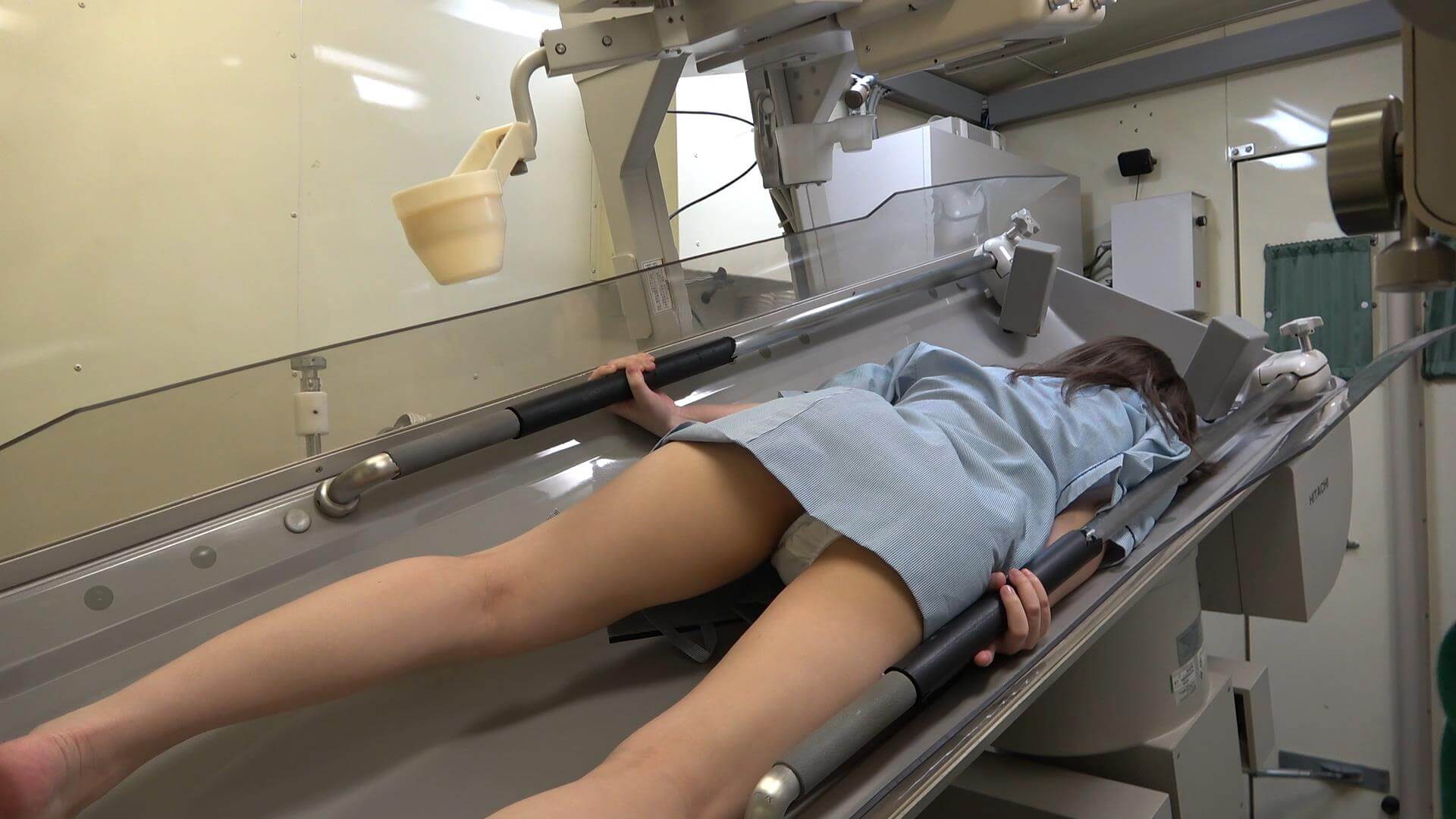【レントゲン車内 バリウム検査 はだけてポロリ】