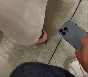 このお姉さん、かなり商品選びに夢中になっているようだったので、周囲をウロウロ動き回って警戒されるより、いっそ股下にカメラを置いて放置した方がいいのでは?とかなり大胆な作戦を思いつきました。