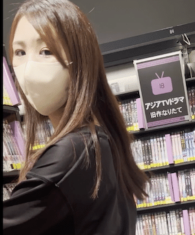 休日のレンタルビデオ店で遭遇した、ロングヘアが美しいお姉さん。