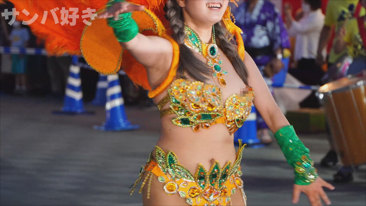 女子大生サンバチームの夏の商店街イベントでのサンバステージです。