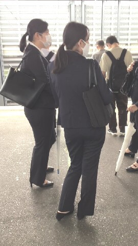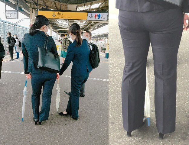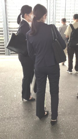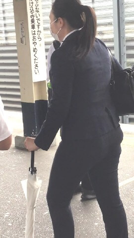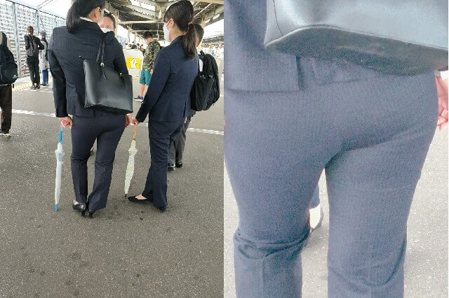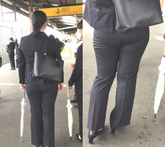 新人と思しきOLさん3人組の集団に遭遇。どの子も、パンツスーツからはちきれんばかりのデカ尻が