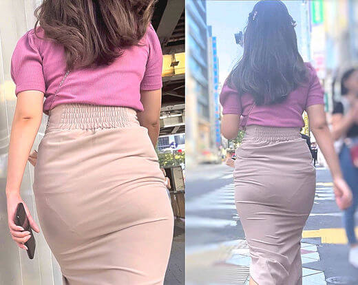 フォルムも当ページで大人気の突き出た”出っ尻”で、タイトスカートなこともあり出っ尻具合がかなり分かりやすく見て取れるのも最高です。
