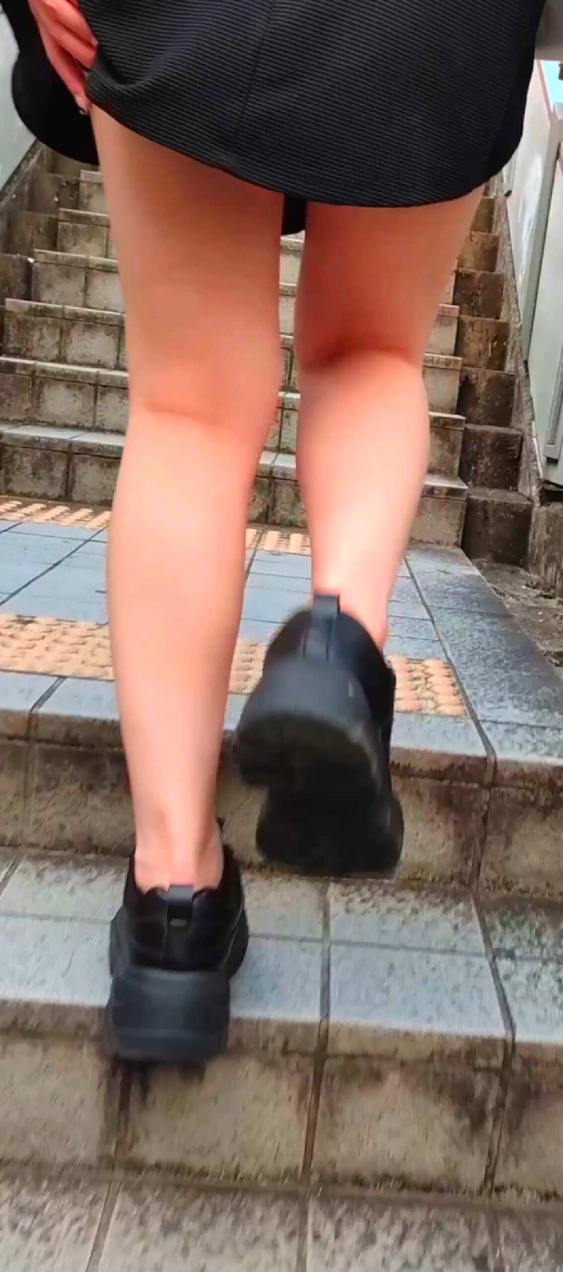 退店後に駐車場への階段を上って行ったので後ろに着くと、今度はスカートを押さえられなかったのでスカートをめくって突っ込みまくり。上着だけ変装というか脱いで白に変えたんですが、それが清潔感あって良かったのかもしれないです。