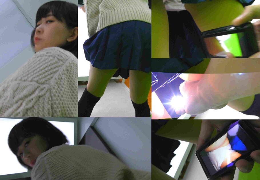 終盤前かがみの時に股を指で隠してます。体勢とミニスカ過ぎるせいか、直に。