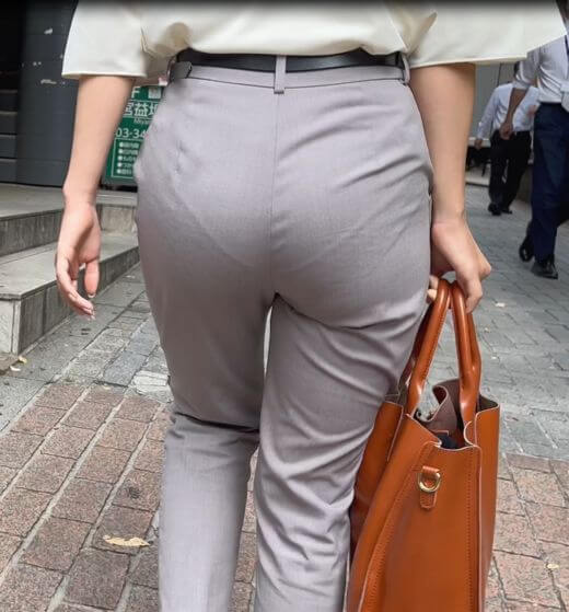 話しは戻り、この女の魅力はもう1つあります。というのも、元のケツがデカすぎるせいで爆尻パンツスーツにありがちなパンティライン(シワ)がしっかりと浮き上がっているのがお下劣過ぎます。