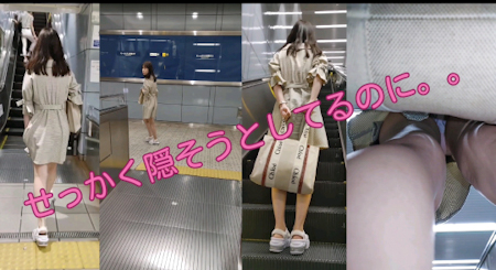 エスカでは意外にも全く後ろを確認せずでしたのでカメラ差し込み放題。特に捲る必要もありませんでしたがちょっとだけ裾を引っ張り・・・