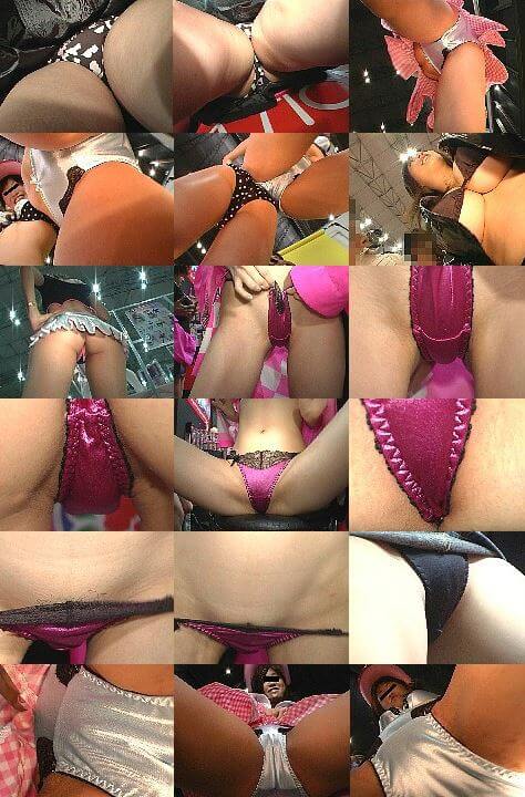 パンフ配りのシルバーなブリーツ・ミニスカのTバックちゃん……刺激的なコスチュームのわりに、なぜか逃げられまくり。Tバックのおツーケー肉を逆さgetするたんび、するっと去られてしまう。追う→Tバックget→するっ、の繰り返し