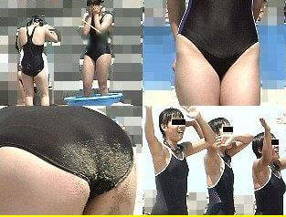 ふだんはミニスカで街を闊歩(かっぽ)している(であろうと思われる)コも、スクール水着だと、妙にしおらしく見えてくるからフシギ。女のコも粒揃い。