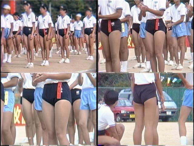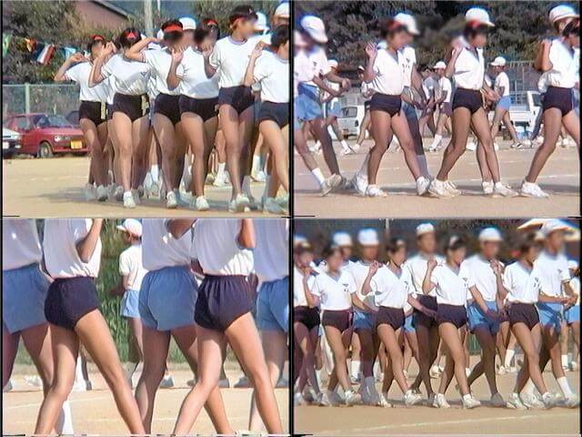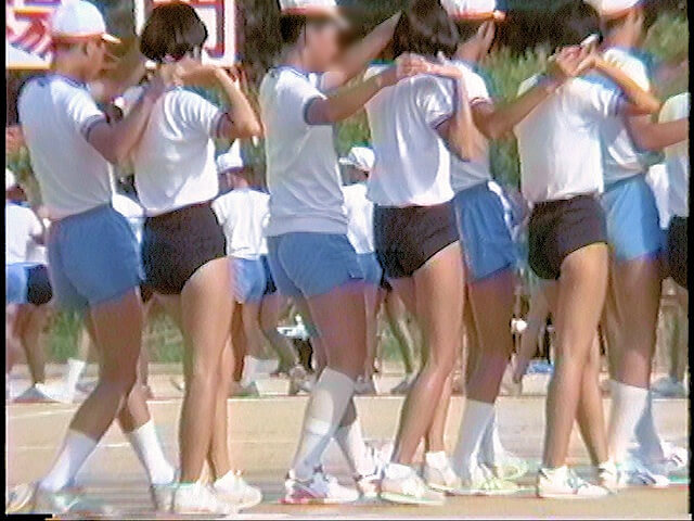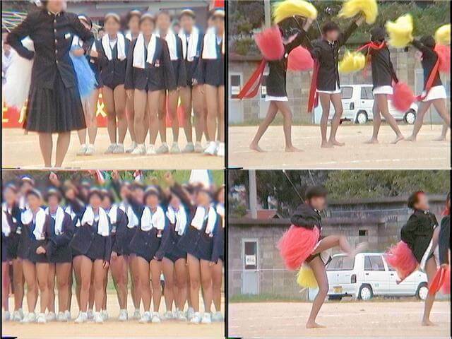 【見どころ】応援合戦では制服のブレザーに下がブルマー。まるでスカートを履いてないみたいです。赤組は男子がテニス用のスコートを履いてますが、下までブルマーを履いてます。