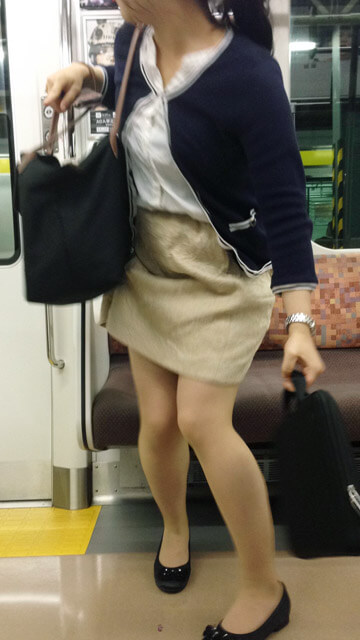 遅い時間の電車内、正面の座席に仕事帰りのOLさんを発見。
