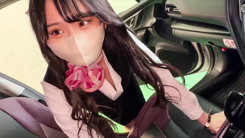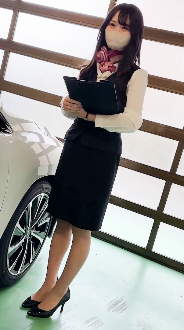車の中を案内してもらうふりをして、エッチなポーズをしてもらったり、ざっくりあいた胸元を凝視したり。
