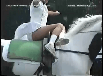 軽乗(ミニスカートでの乗馬演技)の様子。