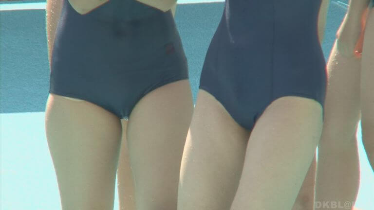 きょうも順調にスタート。皆さん起きてますかー。眠そうな表情が朝らしい。恒例のプールサイドにべったり体付け体操からスタート。今日は朝から晴天。光の加減でシャワーを浴びた直後の半テカリが美しい。23分ころにはお顔、肉付きとも如何にもな娘を発見、その後もたびたび登場します。水着の上下方向の長さが足りず胸の谷間の入り口が見えそうな娘もいる。陸揚げシーンも多く充実の内容。40分ころからは次の時間。ボリュームボディ!特に準備体操中は三つ編みの娘はファニーフェイスにボインちゃん。右隣の娘もかわいい。