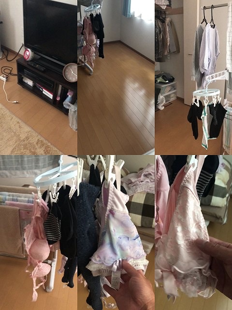 洗濯済みの干してある下着を物色・タンスの中を物色。