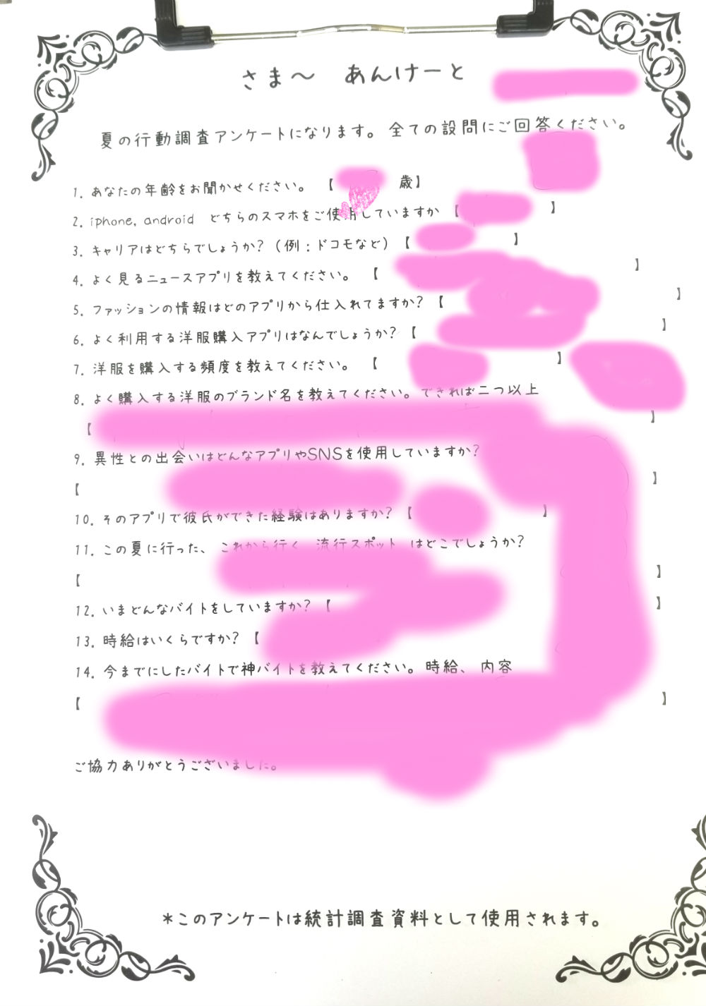 結構人の多い場所でアンケートの声掛け、成約(?)に至るまでは