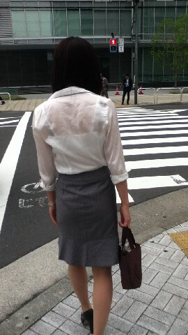 猛暑日の夏に出会ったYシャツから下着がスケスケの状態で路上を歩いていた痴女OLさん。