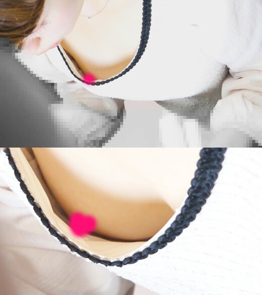着慣れないドレスのため、パックリと空いてしまう胸元から見えてしまったモノです。