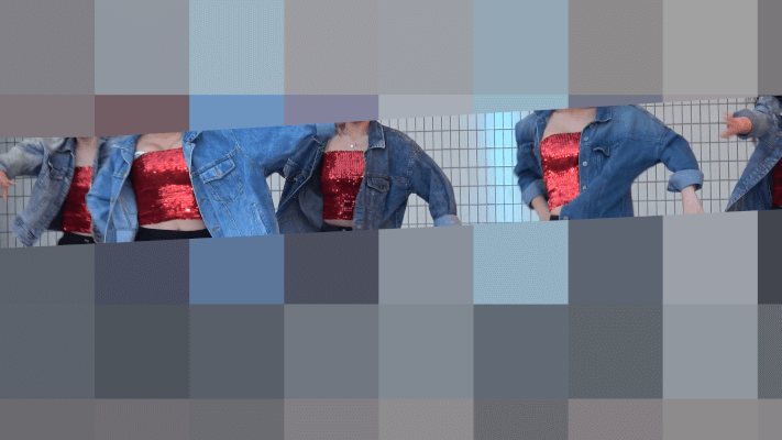 お姉さん系のダンスチームです。メンバーの一人は踊っているうちにシャツのボタンが外れてしまい前が全開に